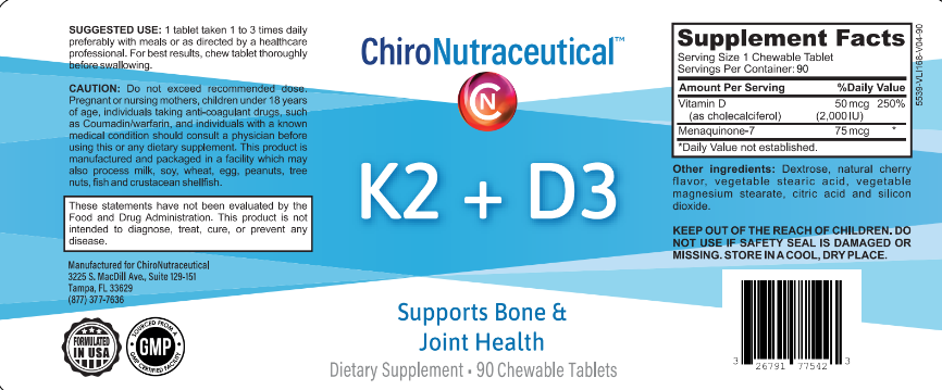 K2+D3 combines vitamins K2 and D3 to support bone health and enhance the immune system. Vitamin D3 aids in calcium absorption, while K2 directs calcium to bones and teeth, preventing its buildup in soft tissues and arteries, thus reducing osteoporosis and fracture risks. Additionally, D3 boosts immune defenses and K2 regulates inflammation, together improving overall health and reducing likelihood of illness.
