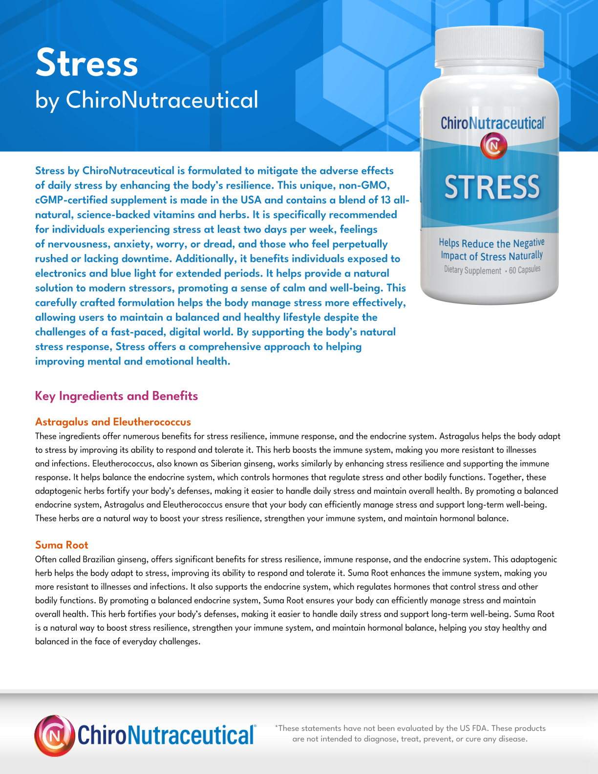 For the stressed and overworked, Stress helps reduce the negative effect of ongoing daily stress by increasing the body’s stress resiliency.
